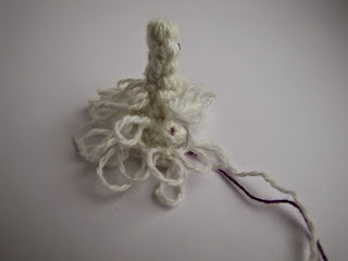 3 ряд: (5 вп, по этой цепочке начиная со 2-й петли вязать: 1 сс, 1 сбн, 1 ссн, 1 сс2н, 1 сс в петлю предыдущего ряда, пропустив 3 петли от петли, из которой вывязывалась цепочка из 5 вп) повт 5 раз