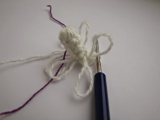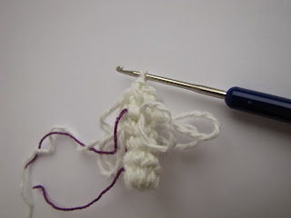 2 ряд: во вторую от крючка петлю вяжем 6 стбн. Ставим маркер, для этого просто перекидываем ниточку